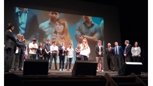 Sul palco con gli organizzatori le due scuole premiate